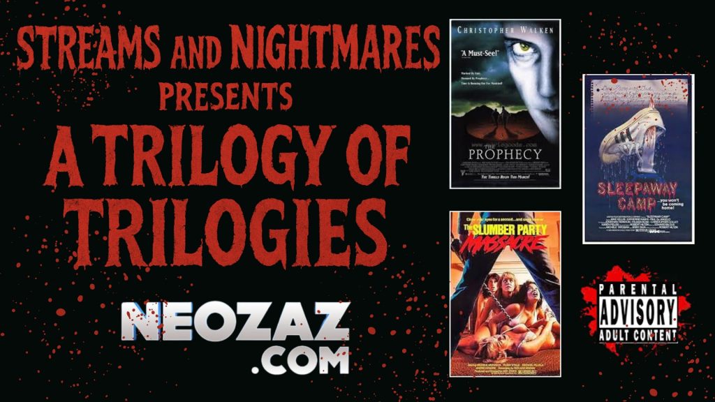 In this episode, Dave discussed the Trilogy horror series: The Prophecy, Sleepaway Camp, and Slumber Party Massacre.